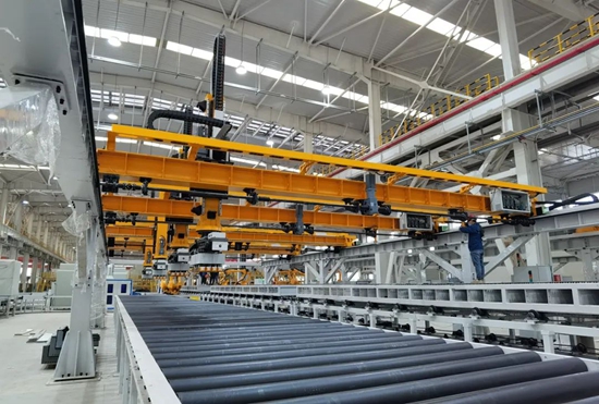 產(chǎn)線投產(chǎn)后改變了傳統(tǒng)的人工下料作業(yè)方式,實(shí)現(xiàn)了切割下料的全自動(dòng)化,內(nèi)部物料智能轉(zhuǎn)運(yùn)率超過(guò)90%。采用國(guó)際先進(jìn)的切割坡口一體化工藝設(shè)備,平均4分鐘可完成一張鋼板的切割下料,減少工件二次搬運(yùn)的同時(shí)大幅提高板材利用率和設(shè)備負(fù)荷率,以高質(zhì)高效的激光智能裝備和工業(yè)信息化軟件,助力太重集團(tuán)打造全面感知、柔性生產(chǎn)、敏捷服務(wù)、科學(xué)決策、產(chǎn)業(yè)協(xié)同、綠色安全的標(biāo)桿智能工廠。