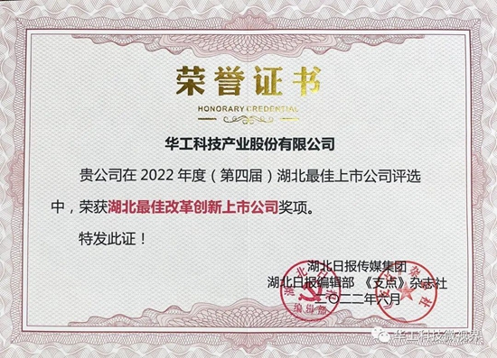 近日,2022年度(第四屆)湖北最佳上市公司評選結(jié)果揭曉,華工科技從120家A股、14家港股上市公司中脫穎而出,獲評湖北最佳改革創(chuàng)新上市公司獎項。